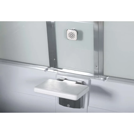 Душевой шланг, Душевая лейка, Держатель для душевой лейки, Полочка, Ручки, Подсветка, Верхний душ, Динамик, Поддон, Сиденье, Радио, Смеситель, Сифон, Штанга душевая, Ножки, Зеркало