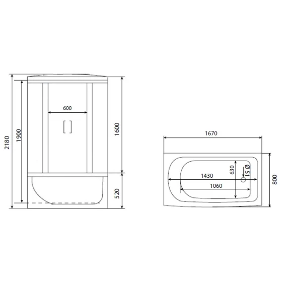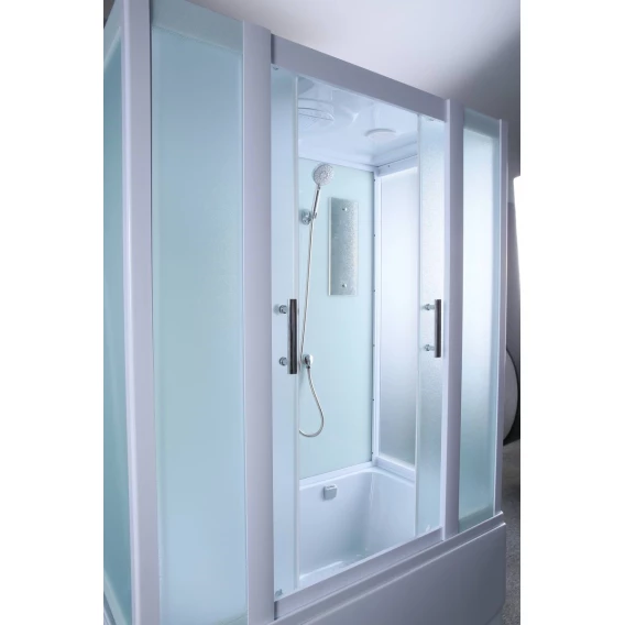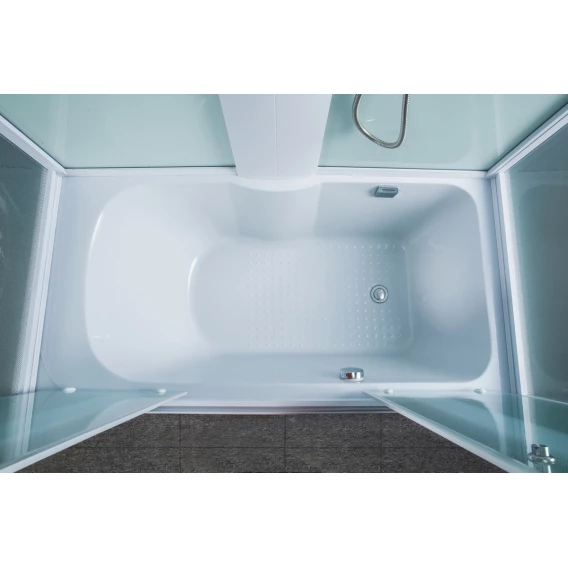 Душевой шланг, Душевая лейка, Держатель для душевой лейки, Подключение для душевого шланга, Полочка, Ручки, Верхний душ, Металлический каркас, Радио, Излив, Слив-перелив, Штанга душевая, Ножки