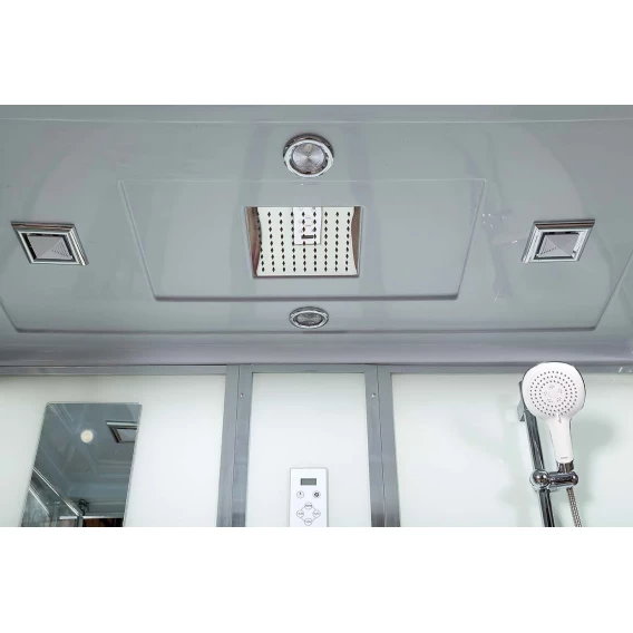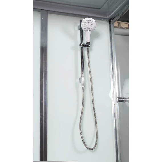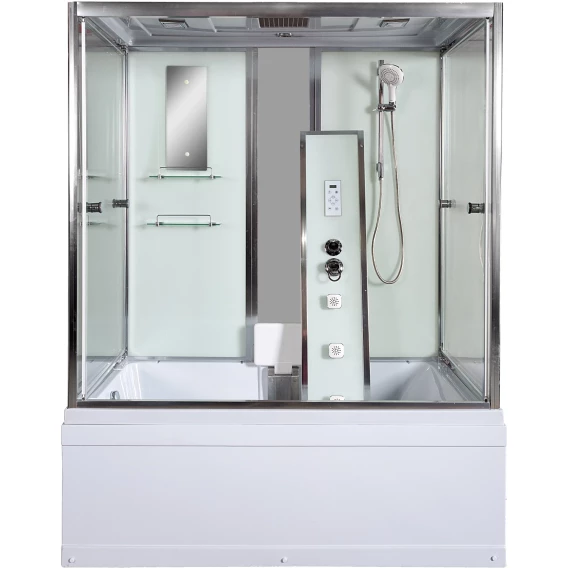 Душевой шланг, Душевая лейка, Держатель для душевой лейки, Полочка, Ручки, Подсветка, Верхний душ, Динамик, Поддон, Сиденье, Радио, Смеситель, Сифон, Штанга душевая, Ножки, Зеркало