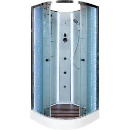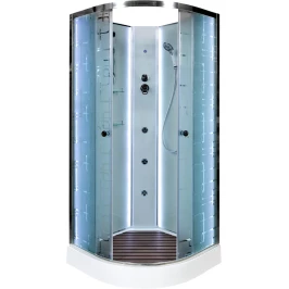 Душевой шланг, Душевая лейка, Держатель для душевой лейки, Полочка, Ручки, LED подсветка, Металлический каркас, Поддон, Смеситель, Сифон, Штанга душевая, Ножки, Зеркало, Настил
