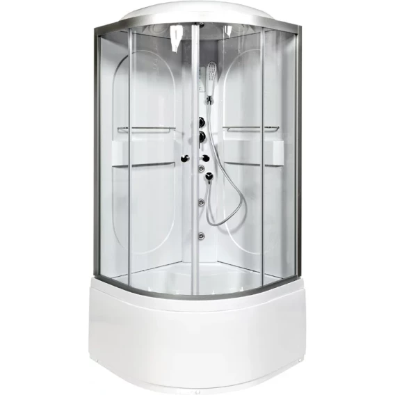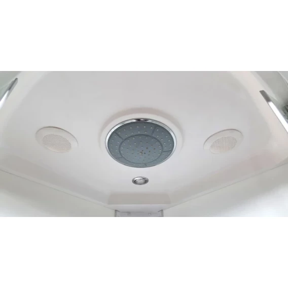 Душевой шланг, Душевая лейка, Держатель для душевой лейки, Подключение для душевого шланга, Ручки, Подсветка, Верхний душ, Динамик, Металлический каркас, Поддон, Сиденье, Радио, Смеситель, Сифон, Ножки