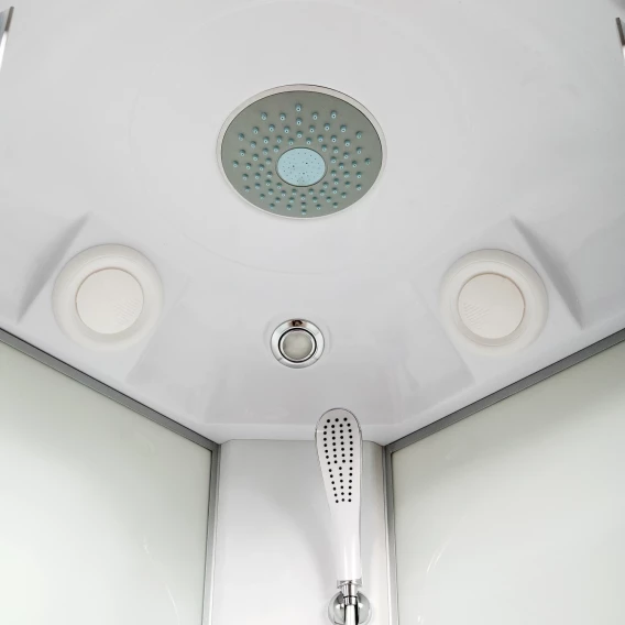 Душевой шланг, Душевая лейка, Держатель для душевой лейки, Подключение для душевого шланга, Ручки, Верхний душ, Металлический каркас, Поддон, Смеситель, Сифон, Ножки