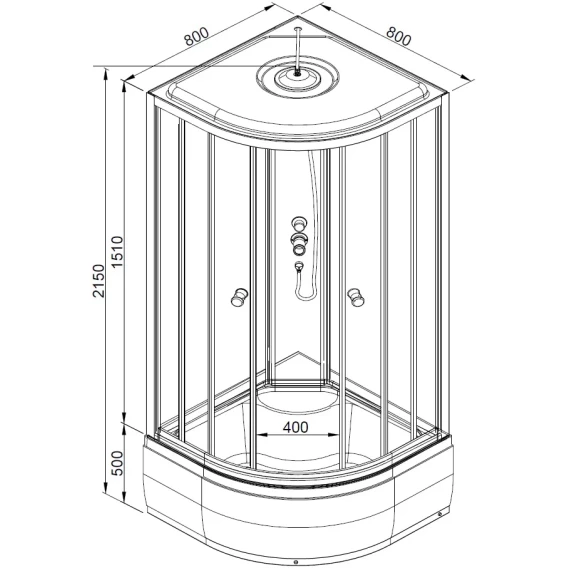 Душевая кабина 80x80x215 см Deto L980GM+EL интимато
