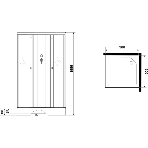Душевая кабина 90x90x195 см Niagara P90/13Q/MT/BK матовое