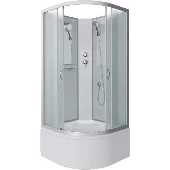 Душевой шланг, Душевая лейка, Держатель для душевой лейки, Подключение для душевого шланга, Полочка, Поддон, Сиденье, Смеситель, Сифон, Ножки, Зеркало
