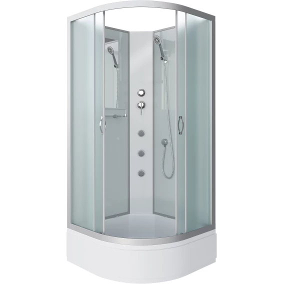 Душевой шланг, Душевая лейка, Держатель для душевой лейки, Подключение для душевого шланга, Полочка, Верхний душ, Поддон, Смеситель, Сифон, Ножки, Зеркало
