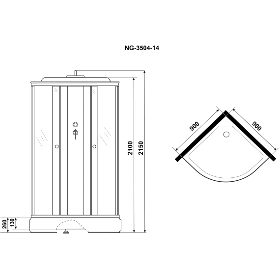 Душевая кабина 90x90x215 см Niagara E90/26/TN тонированное
