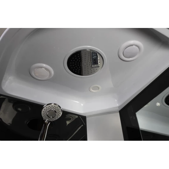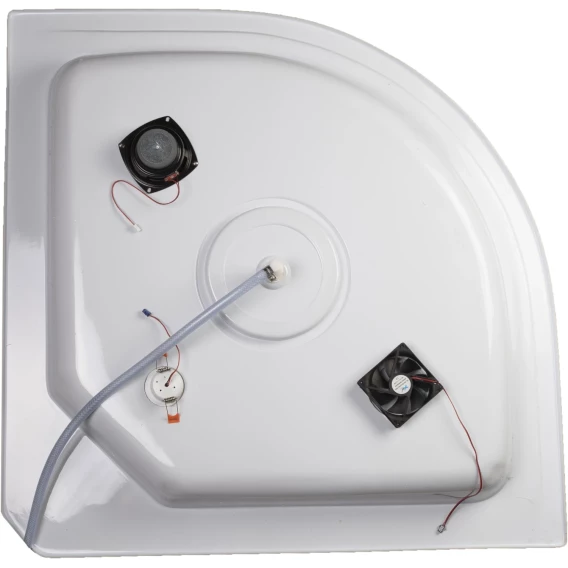 Душевой шланг, Душевая лейка, Держатель для душевой лейки, Подключение для душевого шланга, Полочка, Верхний душ, Динамик, Поддон, Сиденье, Радио, Смеситель, Сифон, Ножки, Зеркало