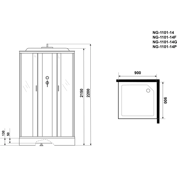 Душевая кабина 90x90x220 см Niagara NG-1101-14G матовое