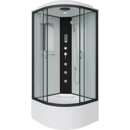 Душевой шланг, Душевая лейка, Держатель для душевой лейки, Подключение для душевого шланга, Полочка, Верхний душ, Динамик, Поддон, Радио, Смеситель, Сифон, Ножки, Зеркало