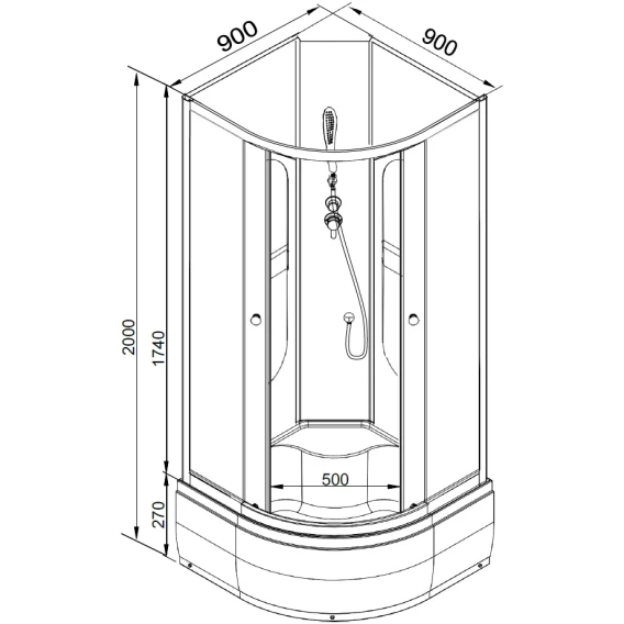 Душевой шланг, Душевая лейка, Держатель для душевой лейки, Подключение для душевого шланга, Ручки, Металлический каркас, Поддон, Смеситель, Сифон, Ножки