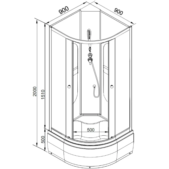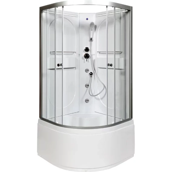 Душевой шланг, Душевая лейка, Держатель для душевой лейки, Подключение для душевого шланга, Ручки, LED подсветка, Металлический каркас, Поддон, Сиденье, Смеситель, Сифон, Ножки