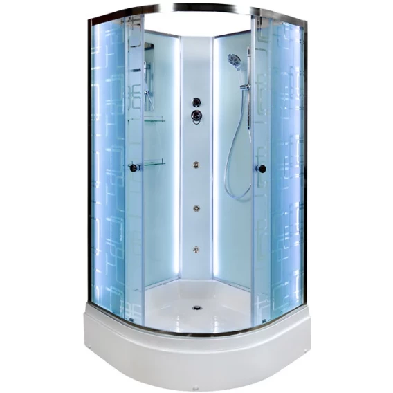 Душевой шланг, Душевая лейка, Держатель для душевой лейки, Полочка, Ручки, LED подсветка, Металлический каркас, Поддон, Смеситель, Сифон, Штанга душевая, Ножки, Зеркало