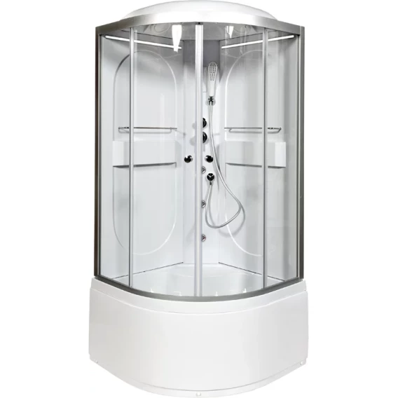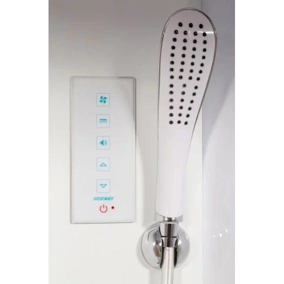 Душевой шланг, Душевая лейка, Держатель для душевой лейки, Подключение для душевого шланга, Ручки, LED подсветка, Верхний душ, Металлический каркас, Поддон, Сиденье, Смеситель, Сифон, Ножки