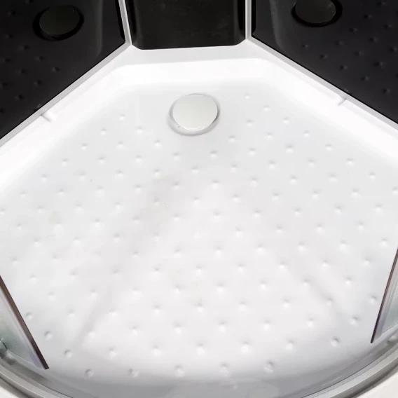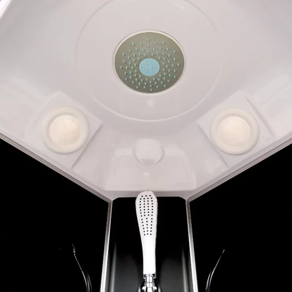 Душевой шланг, Душевая лейка, Держатель для душевой лейки, Подключение для душевого шланга, Ручки, Верхний душ, Металлический каркас, Поддон, Смеситель, Сифон, Ножки