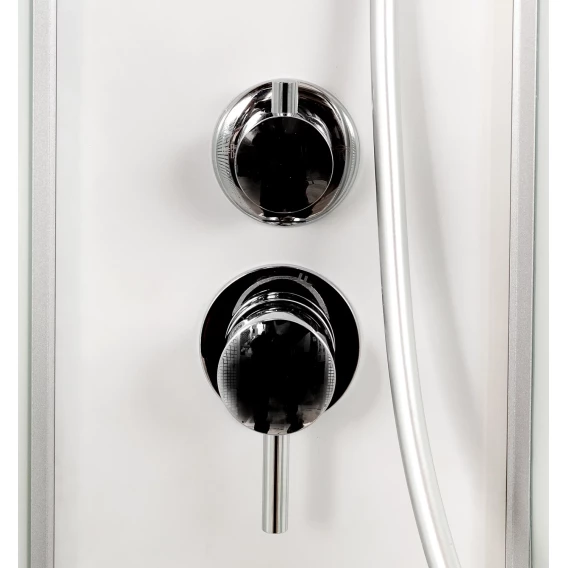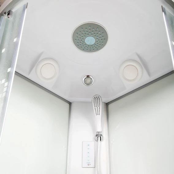 Душевой шланг, Душевая лейка, Держатель для душевой лейки, Подключение для душевого шланга, Ручки, Подсветка, Верхний душ, Динамик, Металлический каркас, Поддон, Радио, Смеситель, Сифон, Ножки