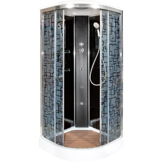 Душевой шланг, Душевая лейка, Держатель для душевой лейки, Полочка, Ручки, Верхний душ, Металлический каркас, Поддон, Смеситель, Сифон, Штанга душевая, Ножки, Зеркало, Настил