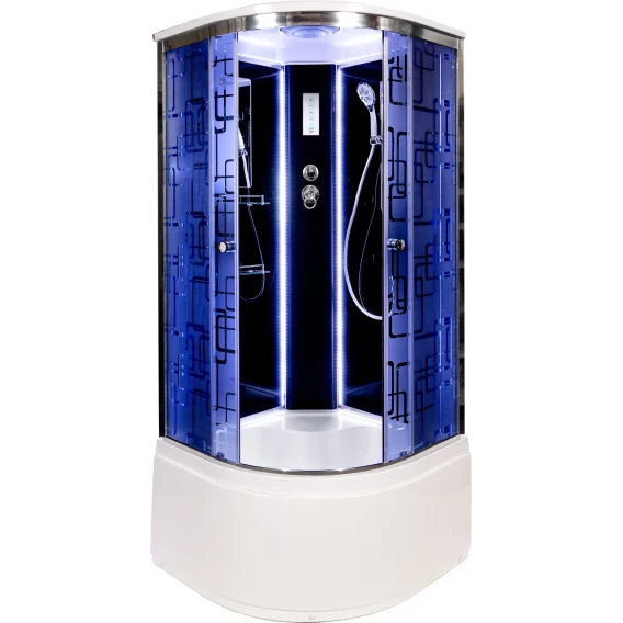 Душевой шланг, Душевая лейка, Держатель для душевой лейки, Полочка, Ручки, LED подсветка, Верхний душ, Динамик, Металлический каркас, Поддон, Сиденье, Радио, Смеситель, Сифон, Штанга душевая, Ножки, Зеркало