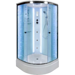 Душевой шланг, Душевая лейка, Держатель для душевой лейки, Полочка, Ручки, LED подсветка, Верхний душ, Динамик, Металлический каркас, Поддон, Радио, Смеситель, Сифон, Штанга душевая, Ножки, Зеркало