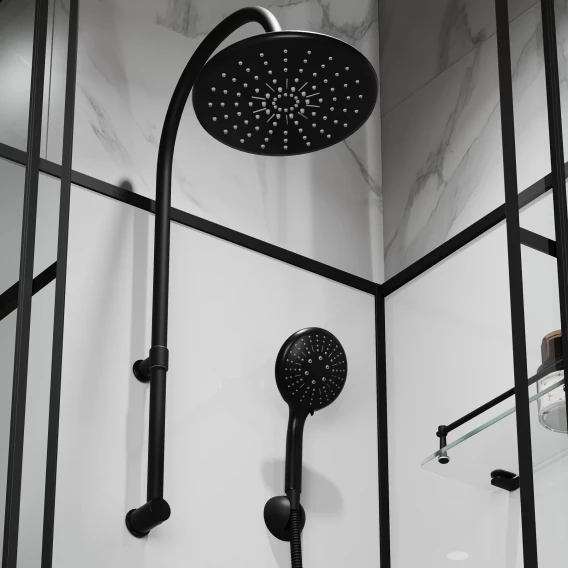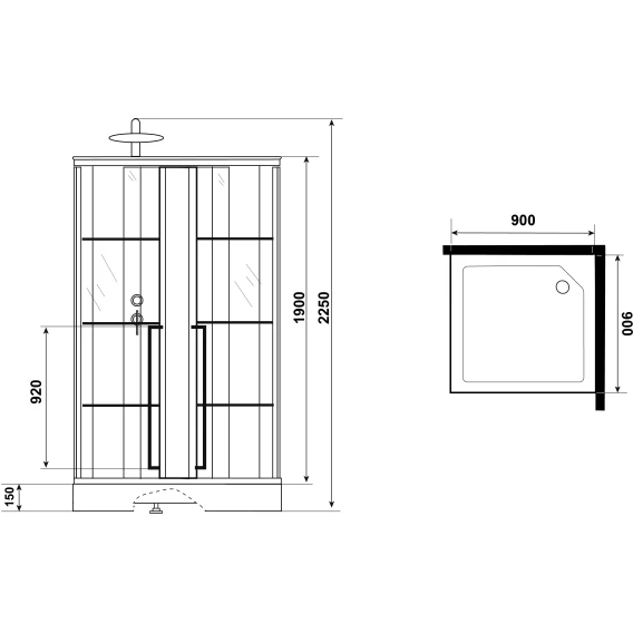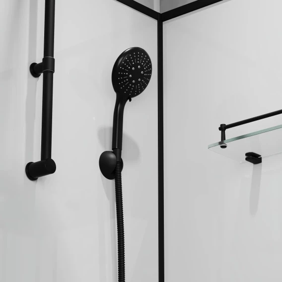 Душевой шланг, Душевая лейка, Держатель для душевой лейки, Подключение для душевого шланга, Полочка, Ручки, Верхний душ, Поддон, Смеситель, Сифон, Кронштейн, Ножки