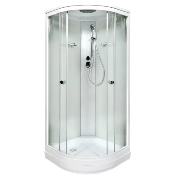 Душевой шланг, Душевая лейка, Держатель для душевой лейки, Полочка, Ручки, Верхний душ, Металлический каркас, Поддон, Смеситель, Сифон, Штанга душевая, Ножки