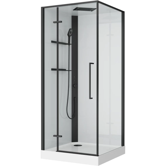 ● Кабина имеет компактные и удобные габариты — 900×900 мм по основанию и высоту 2125 мм, что позволяет ей вписаться даже в небольшое пространство стандартного санузла.