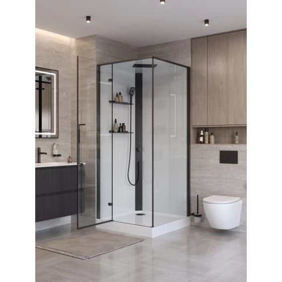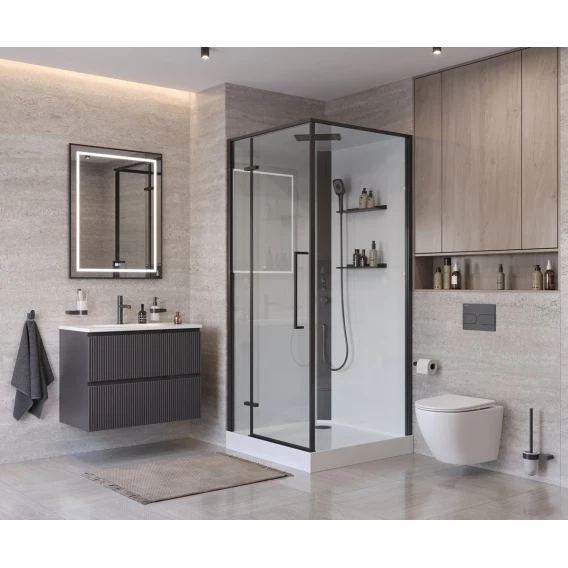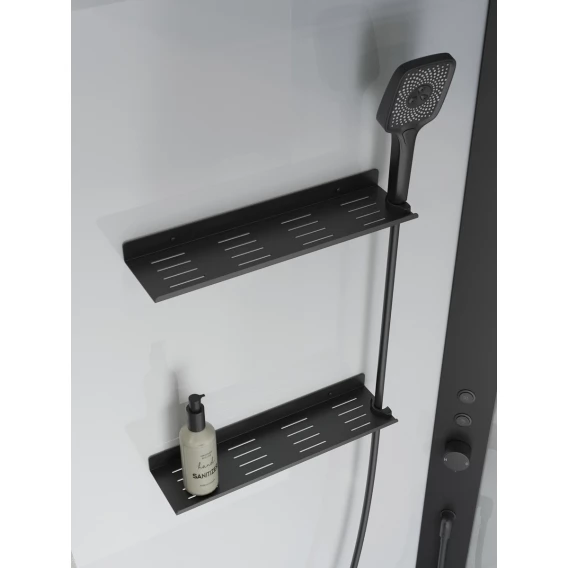 Это самодостаточная конструкция, для которой нужно лишь подключение к коммуникациям, без лишней пыли и демонтажа. Вы сразу получаете не просто функциональный объект, а стильный и презентабельный элемент ванной, который выглядит дорого и современно. Доступно в двух вариантах отделки: хром (с белыми полками и панелью) и черный матовый.