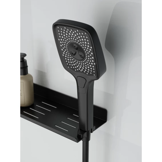 ● Душевое оборудование включает трёхрежимный ручной душ с ПВХ-шлангом и верхний душ размером 300×220 мм. Все элементы выполнены из ABS-пластика и оснащены мягкими форсунками, которые легко очищаются от налёта.