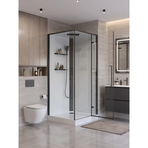 Это самодостаточная конструкция, для которой нужно лишь подключение к коммуникациям, без лишней пыли и демонтажа. Вы сразу получаете не просто функциональный объект, а стильный и презентабельный элемент ванной, который выглядит дорого и современно. Доступно в двух вариантах отделки: хром (с белыми полками и панелью) и черный матовый.