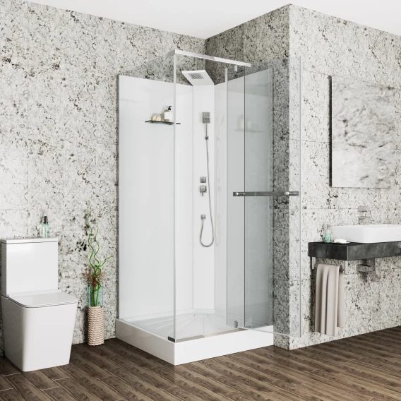 Душевой шланг, Душевая лейка, Держатель для душевой лейки, Подключение для душевого шланга, Полочка, Верхний душ, Ручка, Поддон, Смеситель, Сифон, Ножки