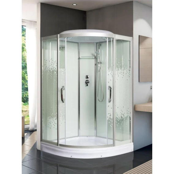 Душевой шланг, Душевая лейка, Держатель для душевой лейки, Полочка, Ручки, Верхний душ, Металлический каркас, Поддон, Смеситель, Сифон, Штанга душевая, Ножки, Зеркало