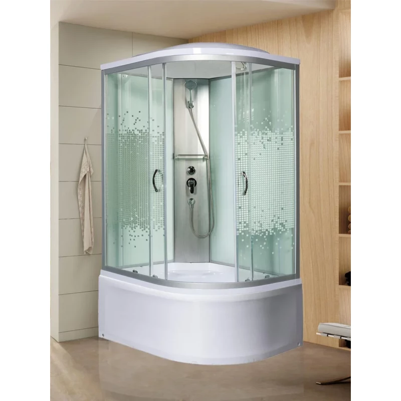 Душевой шланг, Душевая лейка, Держатель для душевой лейки, Подключение для душевого шланга, Полочка, Ручки, Верхний душ, Металлический каркас, Поддон, Сиденье, Смеситель, Сифон, Ножки