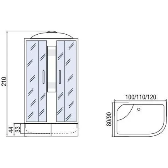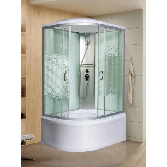 Душевой шланг, Душевая лейка, Держатель для душевой лейки, Подключение для душевого шланга, Полочка, Ручки, Верхний душ, Металлический каркас, Поддон, Сиденье, Смеситель, Сифон, Ножки