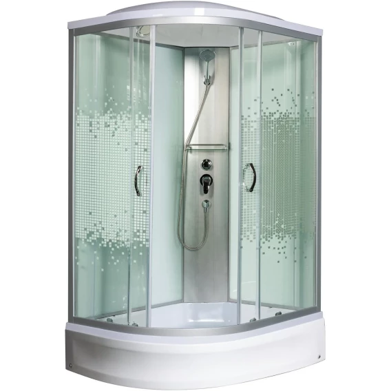 Душевой шланг, Душевая лейка, Держатель для душевой лейки, Подключение для душевого шланга, Полочка, Ручки, Верхний душ, Металлический каркас, Поддон, Смеситель, Сифон, Ножки