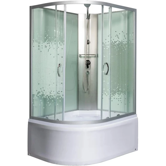 Душевой шланг, Душевая лейка, Держатель для душевой лейки, Подключение для душевого шланга, Полочка, Ручки, Металлический каркас, Поддон, Сиденье, Смеситель, Сифон, Ножки