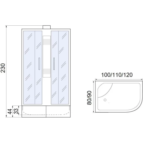 Душевая кабина Мономах XL Б/К 100/80/44 МЗ R 10000012102 100x80x230 см R, без крыши, высокий поддон, профиль матовый хром, стекло интимато