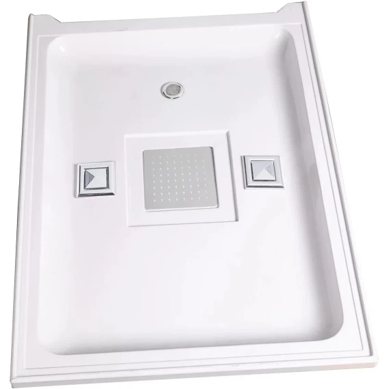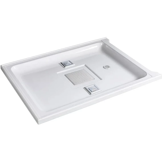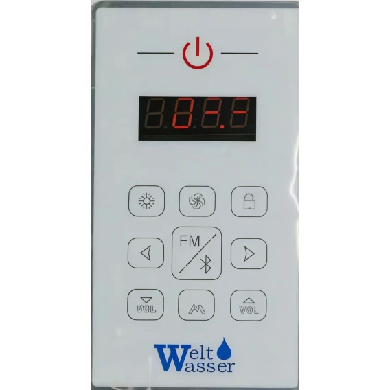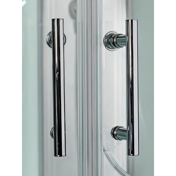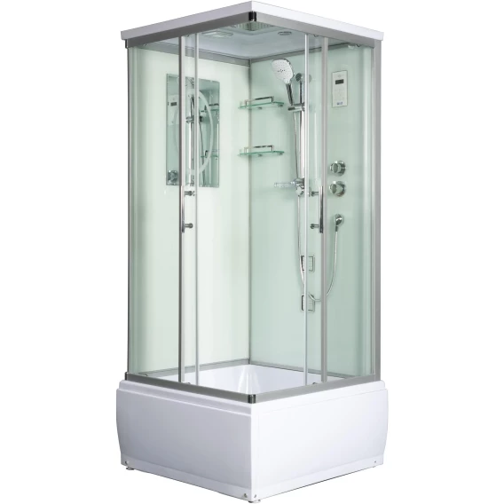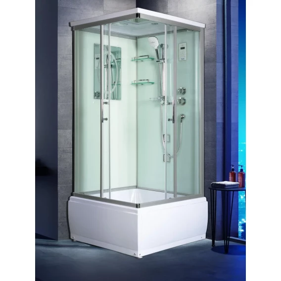 Душевой шланг, Душевая лейка, Держатель для душевой лейки, Подключение для душевого шланга, Полочка, Ручки, Подсветка, Верхний душ, Bluetooth, Динамик, Металлический каркас, Поддон, Сиденье, Радио, Сифон, Мыльница, Штанга душевая, Термостат, Ножки, Зеркало