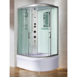 Душевой шланг, Душевая лейка, Держатель для душевой лейки, Подключение для душевого шланга, Полочка, Ручки, Подсветка, Верхний душ, Bluetooth, Динамик, Металлический каркас, Поддон, Сиденье, Радио, Сифон, Мыльница, Штанга душевая, Термостат, Ножки, Зеркало