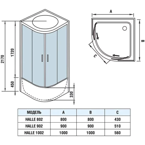 Душевой шланг, Душевая лейка, Держатель для душевой лейки, Подключение для душевого шланга, Полочка, Ручки, Верхний душ, Металлический каркас, Поддон, Сиденье, Смеситель, Сифон, Мыльница, Штанга душевая, Ножки, Зеркало