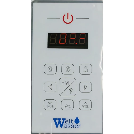 Душевой шланг, Душевая лейка, Держатель для душевой лейки, Подключение для душевого шланга, Полочка, Ручки, Подсветка, Верхний душ, Bluetooth, Динамик, Металлический каркас, Поддон, Радио, Сифон, Мыльница, Штанга душевая, Термостат, Ножки, Зеркало