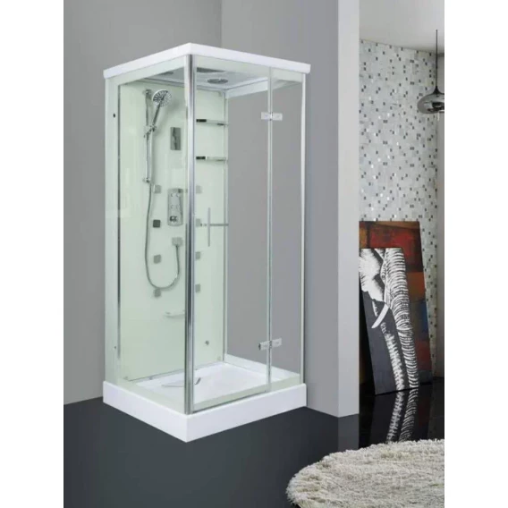 Душевой шланг, Душевая лейка, Держатель для душевой лейки, Подключение для душевого шланга, Полочка, Подсветка, Верхний душ, Bluetooth, Динамик, Металлический каркас, Ручка, Поддон, Радио, Сифон, Штанга душевая, Термостат, Ножки, Зеркало