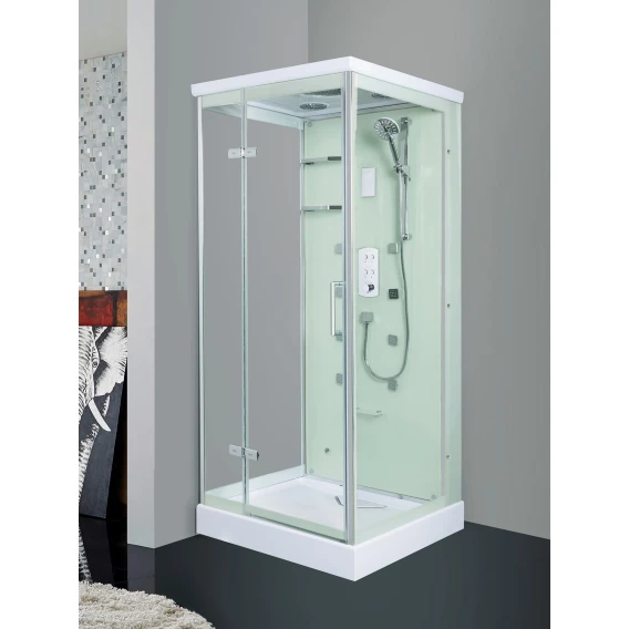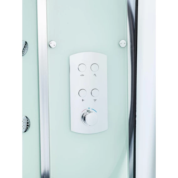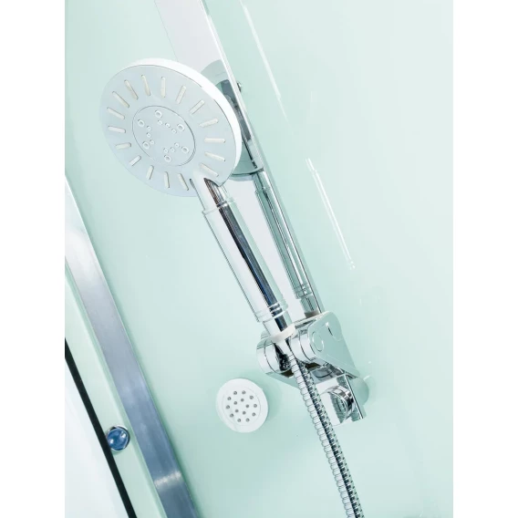 Душевой шланг, Душевая лейка, Держатель для душевой лейки, Подключение для душевого шланга, Полочка, Подсветка, Верхний душ, Bluetooth, Динамик, Металлический каркас, Ручка, Поддон, Радио, Сифон, Штанга душевая, Термостат, Ножки, Зеркало