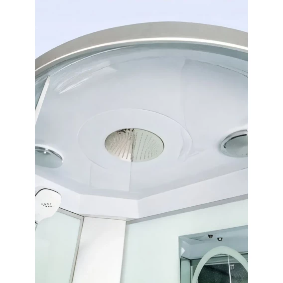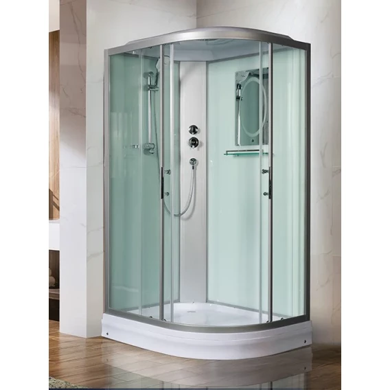 Душевой шланг, Душевая лейка, Держатель для душевой лейки, Подключение для душевого шланга, Полочка, Ручки, Верхний душ, Металлический каркас, Поддон, Смеситель, Сифон, Мыльница, Штанга душевая, Ножки, Зеркало