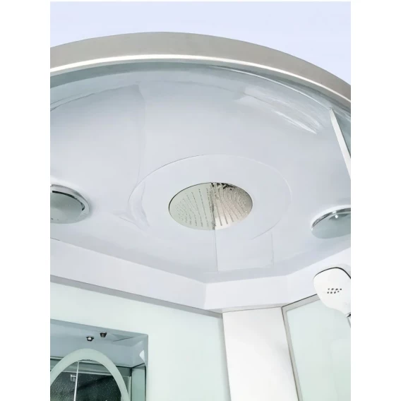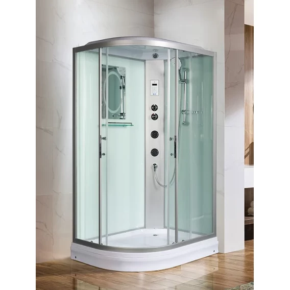 Душевой шланг, Душевая лейка, Держатель для душевой лейки, Подключение для душевого шланга, Полочка, Ручки, Подсветка, Верхний душ, Bluetooth, Динамик, Металлический каркас, Поддон, Радио, Сифон, Мыльница, Штанга душевая, Термостат, Ножки, Зеркало