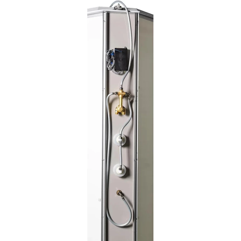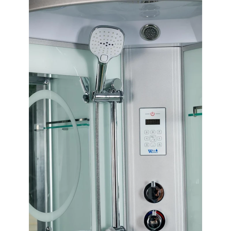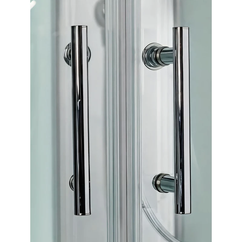 Душевой шланг, Душевая лейка, Держатель для душевой лейки, Подключение для душевого шланга, Полочка, Ручки, Подсветка, Верхний душ, Bluetooth, Динамик, Металлический каркас, Поддон, Радио, Сифон, Мыльница, Штанга душевая, Термостат, Ножки, Зеркало