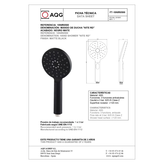 Душевая лейка AQG Nite RD 10NIR0500 120 мм, 3 режима, черный матовый