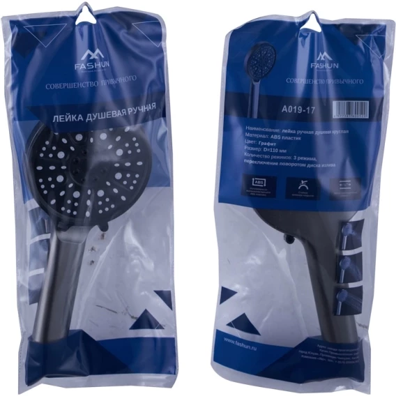 Душевая лейка Fashun A019-17 112 мм, 3 режима, оружейная сталь