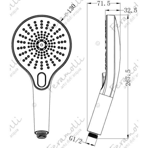 Душевая лейка Feramolli Sole S041CN 130 мм, 3 режима, никель матовый