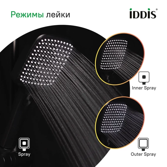 Душевая лейка IDDIS Esper ESP3FBSi18 109,9 мм, 3 режима, черный матовый