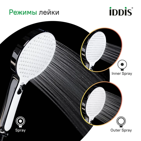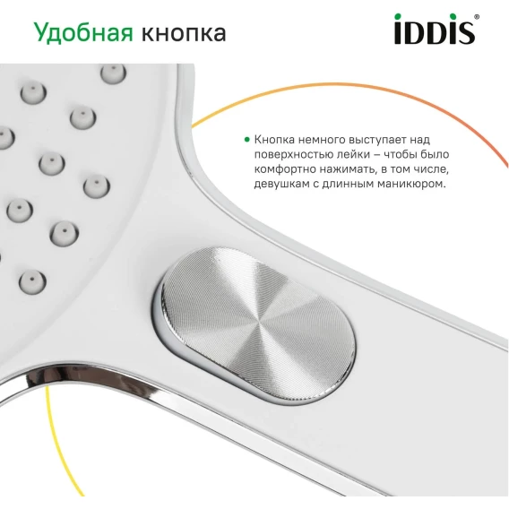 Душевая лейка IDDIS Esper ESP3FCRi18 129,8 мм, 3 режима, хром/белый